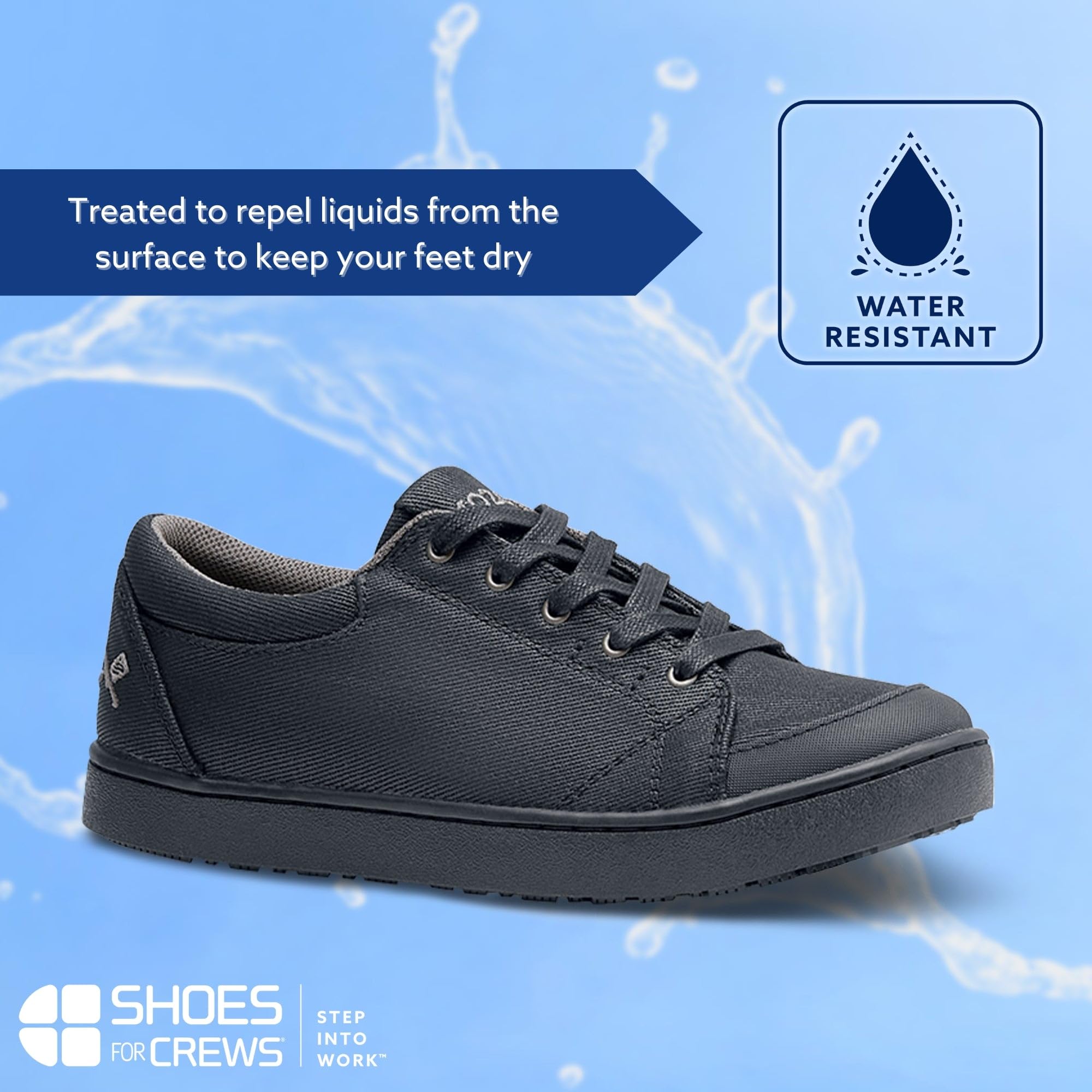 - BUILT TO BLOCK THE MESS: Water-resistant canvas, a gusseted tongue and no-nonsense design keep debris out and your feet dry. Not waterproof—just tough enough for the wet grind. Need a full seal? We've got waterproof restaurant shoes for women, too.