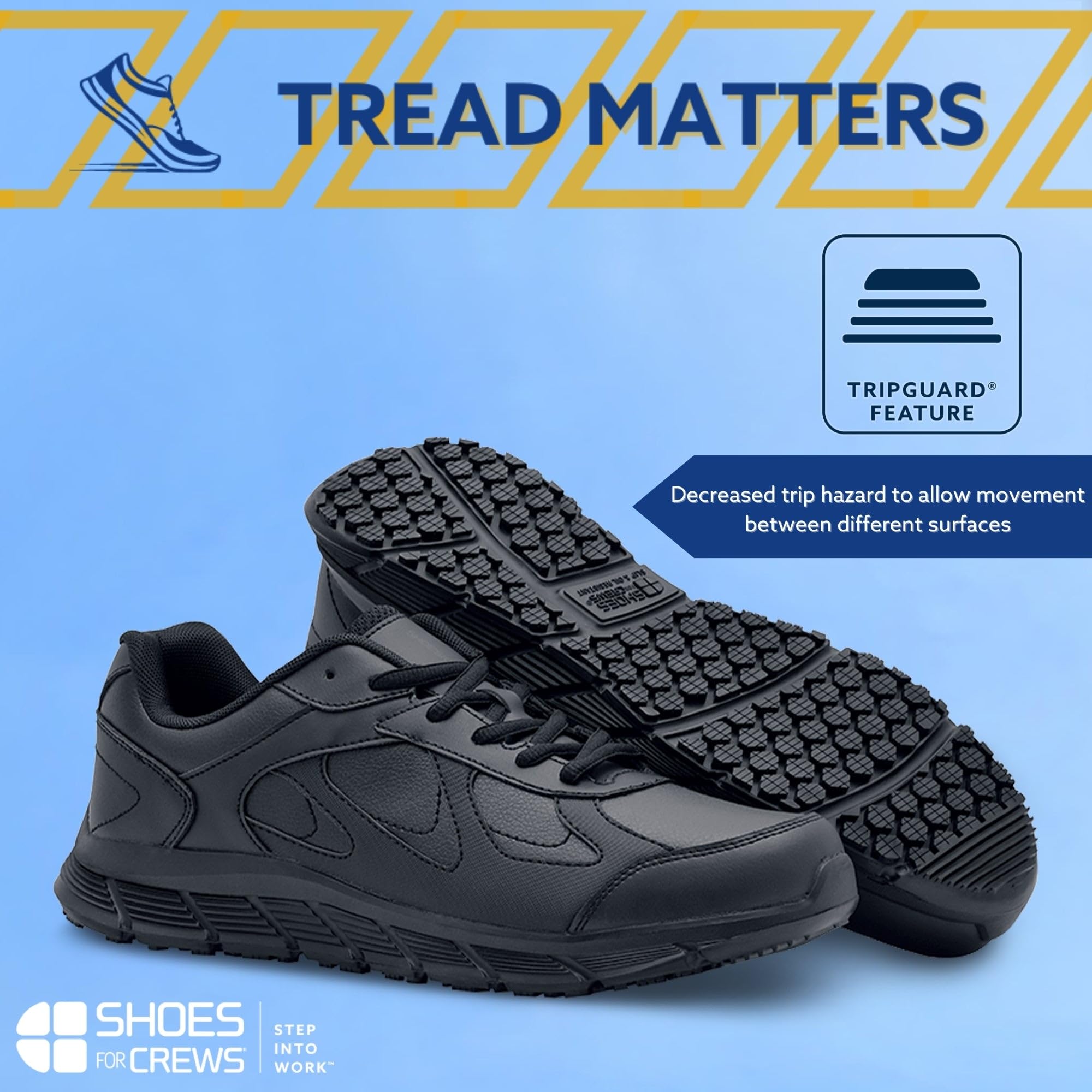 TRIPGUARD feature: Decreased trip hazard zone to allow fluid movement between slippery environments.
