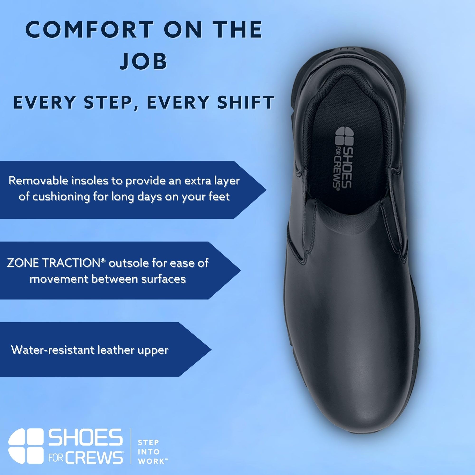 Shoes for Crews Men's Slip-Resistant Slip-On Work Shoes - Comfortable, Non-Slip Work Shoes for Men - Ideal for Restaurant, Healthcare, Retail Staff - Cater II