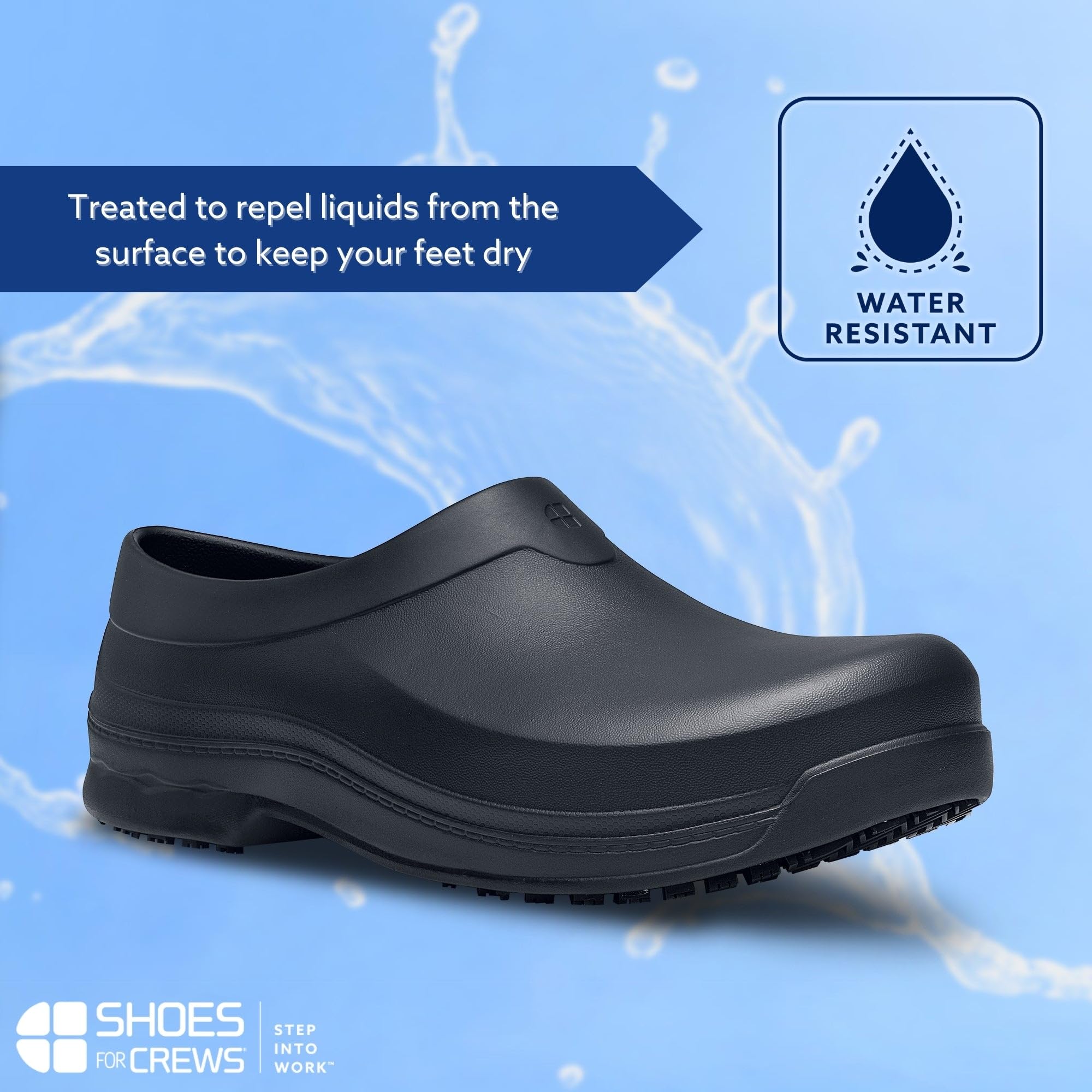 - WATER-RESISTANT: Repels light rain, spills and splashes with a water-resistant, quick-drying rubber blend. Please Note: Our water-resistant nursing shoes are not for full submersion. For complete protection, explore our waterproof men's and women's shoes.