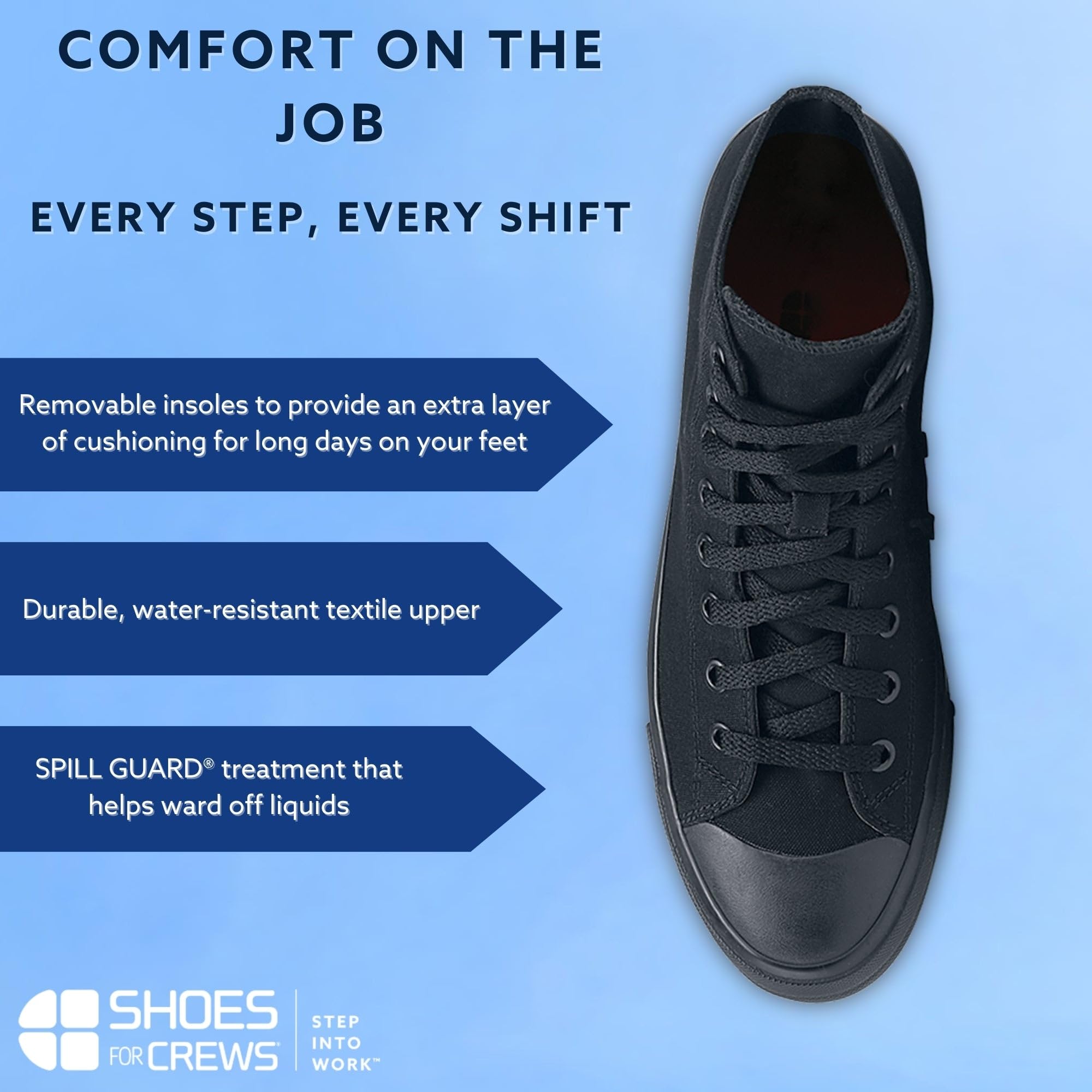 • ORIGINAL SLIP-RESISTANCE: Since creating the first slip-resistant work shoe in 1984, Shoes For Crews has set the standard in safety footwear. Backed by 40+ years of innovation, our shoes are trusted by 150,000+ businesses to keep workers safe.
